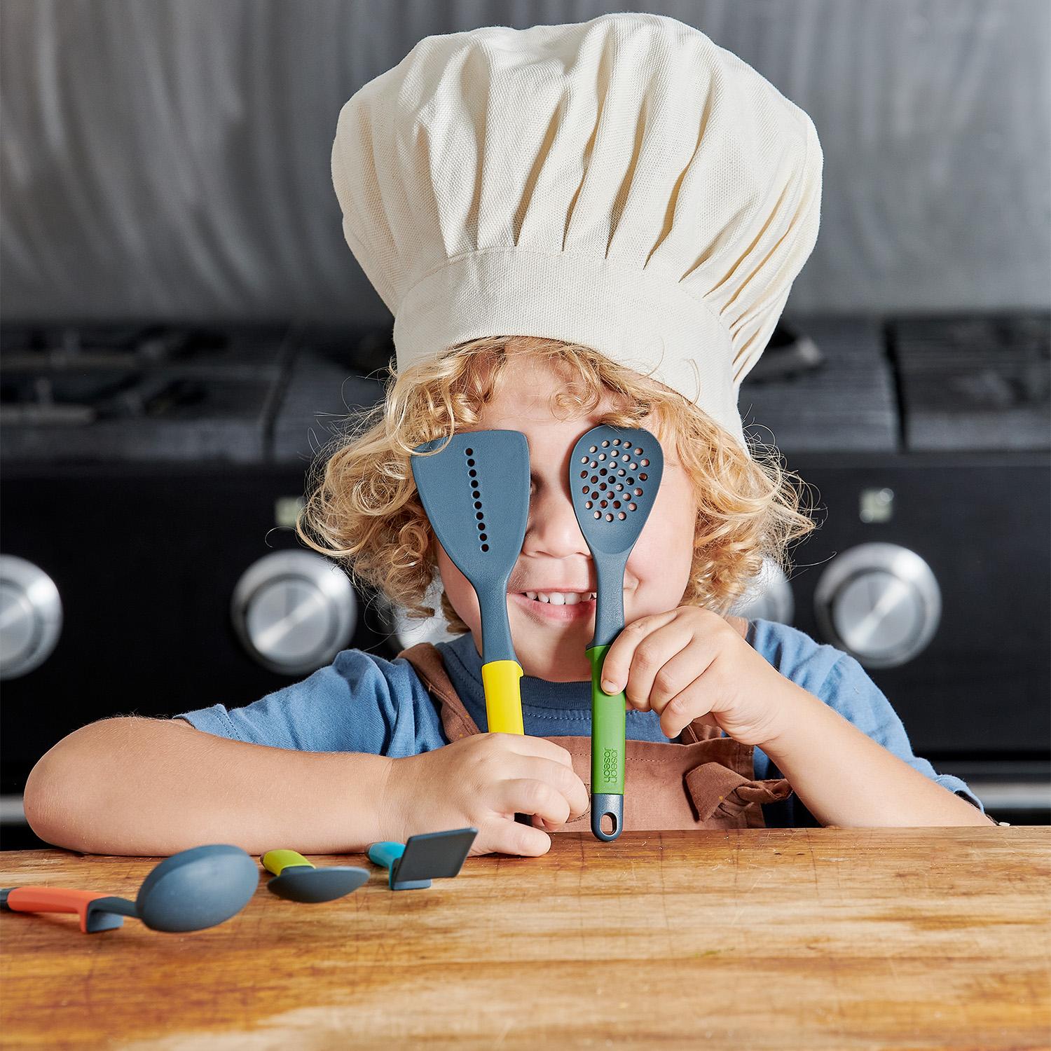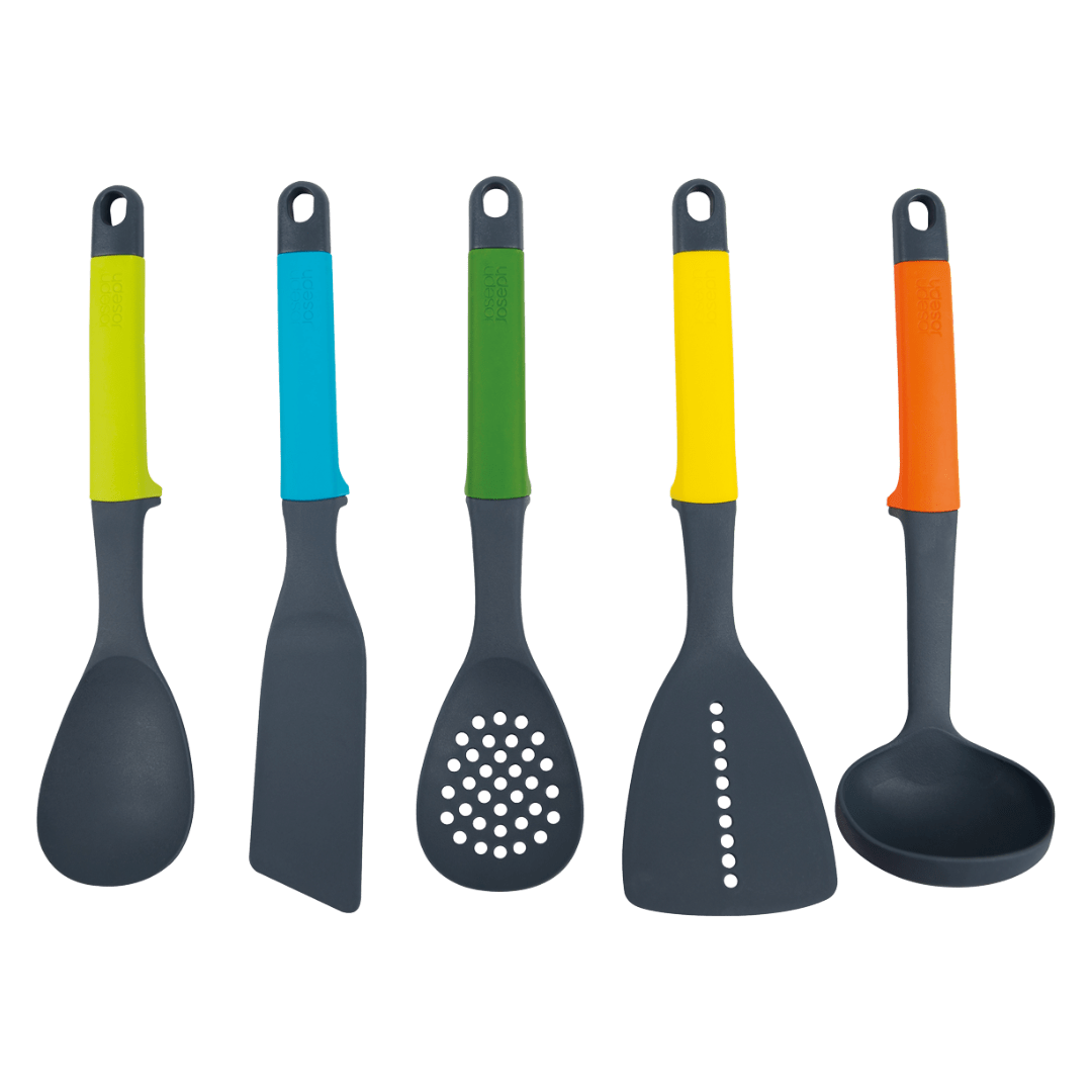 With colour-coordinating handles, this utensil set adds a vibrant splash to both imaginary and real kitchens. - includes: